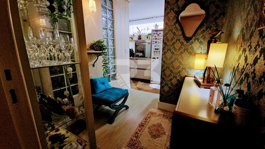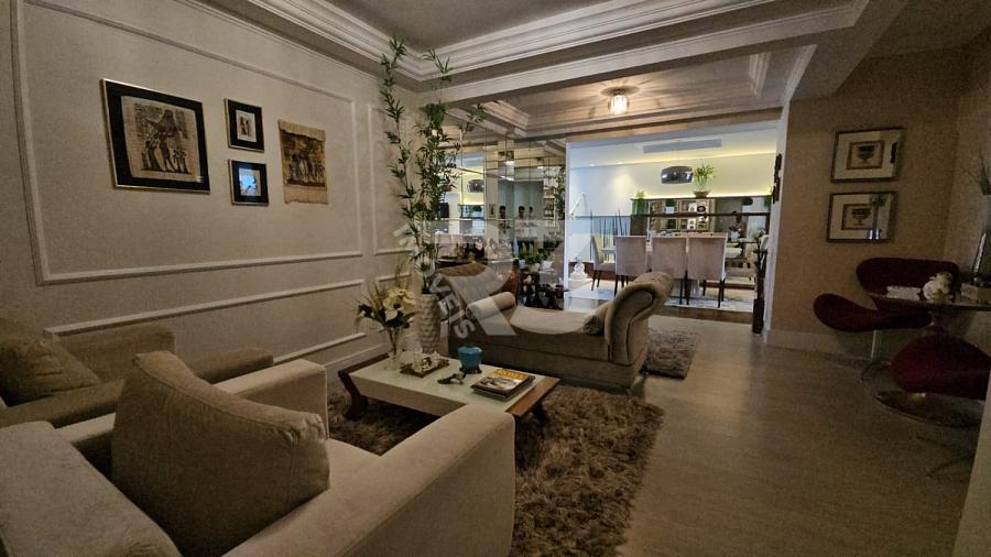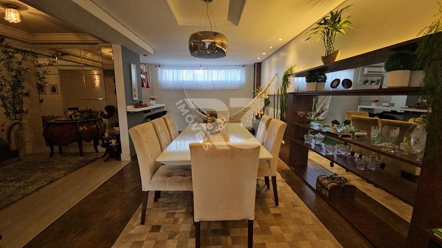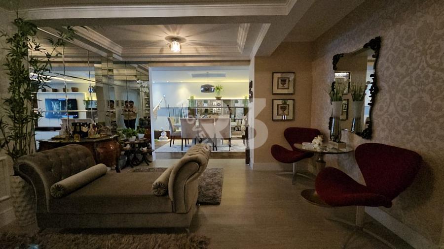 O apartamento também conta com um espaço gourmet, lavanderia e solarium. Ele é vendido totalmente mobiliado e possui uma área privativa de 204 m². Para sua comodidade, há 3 vagas de garagem disponíveis. O condomínio possui um elevador e portaria eletrônica, mas não oferece áreas de lazer.