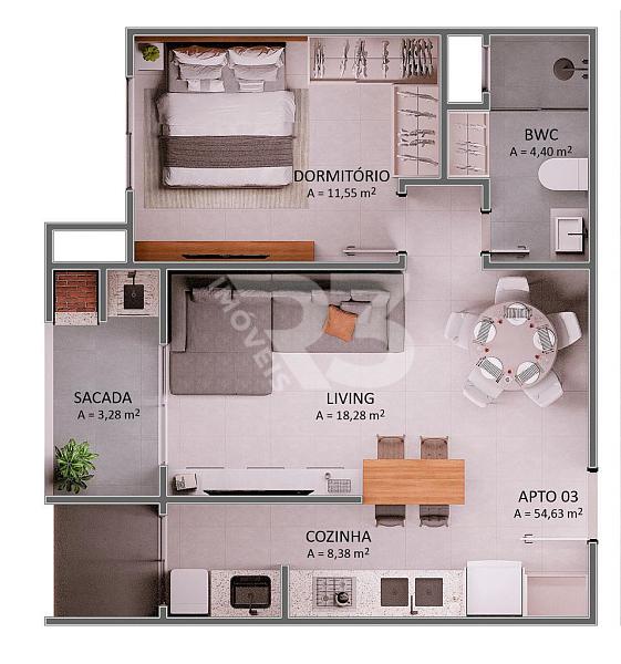 2 dormitórios (1 suíte)