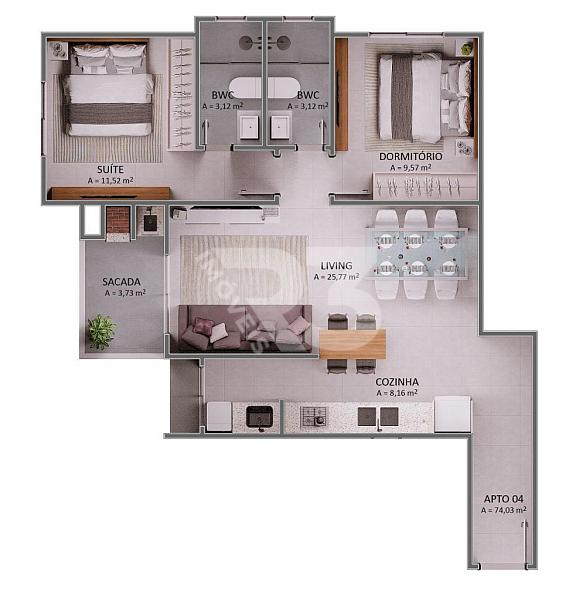 74,00 m² de área privativa
